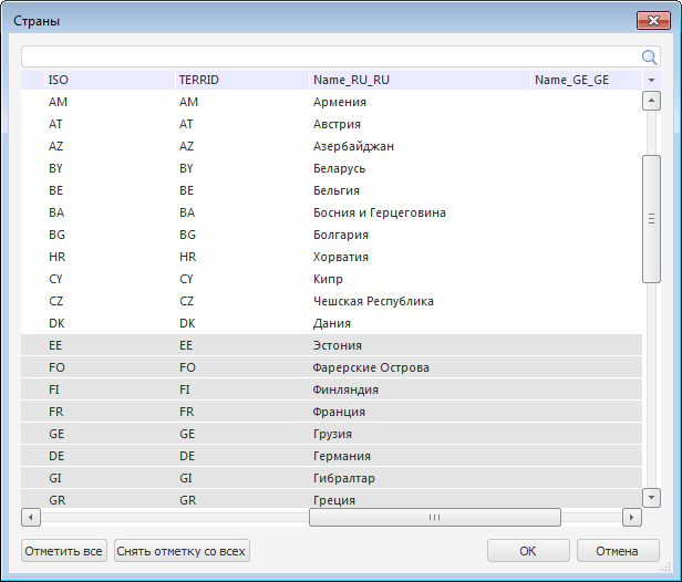 Для поиска используйте поле, расположенное в верхней части диалога.