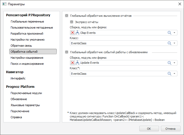 Обработчик событий передает параметры экспресс-отчёта, с которыми производилось вычисление, и позволяет выполнять заданное с помощью кода действие при каждом возникновении события.