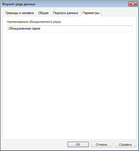 Для настройки наименования объединенного ряда перейдите на вкладку «Параметры» диалогового окна «Формат ряда данных». Настройка доступна только для объединенных рядов основной диаграммы (у вторичной гистограммы и вторичной круговой диаграммы).