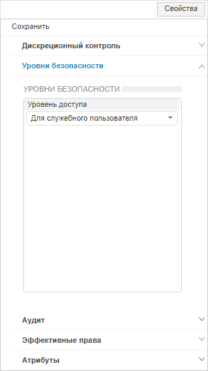 Для настройки параметров уровней безопасности используйте вкладку «Уровни безопасности» в окне «Параметры управления доступом» в настольном приложении и на боковой панели «Свойства» в веб-приложении: