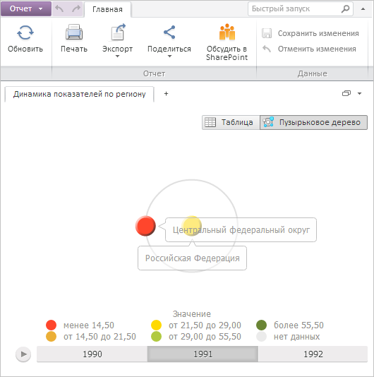 Для выполнения примера откройте экспресс-отчёт в веб-приложении продукта «Форсайт. Аналитическая платформа». Убедитесь, что в репозитории содержится экспресс-отчёт с ключом 4998.