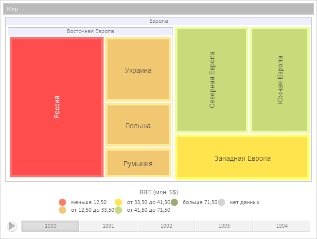 Для выполнения примера предполагается наличие на странице компонента TreeMap с наименованием «treeMap» (см. «Пример создания компонента TreeMap» ). Закрасим элемент диаграммы с индексом 3 красным цветом, перерисуем элемент, получим его контейнер и изменим его прозрачность: