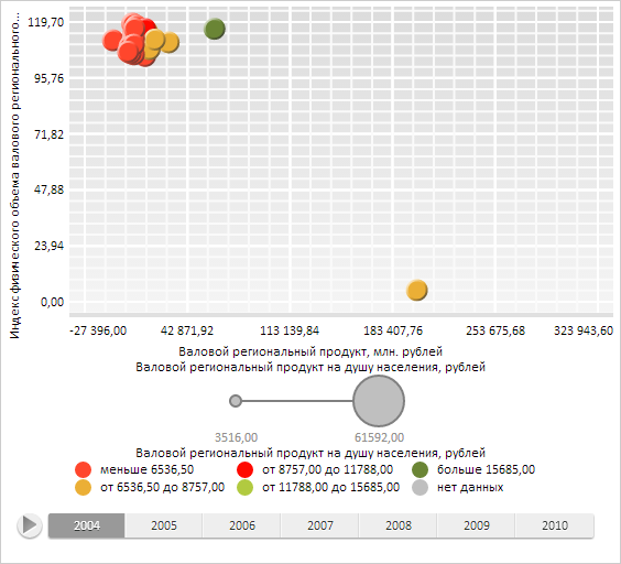 Для выполнения примера необходимо наличие на html-странице компонента BubbleChart с наименованием «bubbleChart» (см. «Пример создания компонента BubbleChart»). Очистим данные временной оси X. Определим и установим новые массивы данных для временных осей X и Y. Для временной оси X добавим новый элемент в конец массива данных, добавим и удалим элементы по указанным индексам. Заменим элемент в позиции с указанным индексом временной оси Y. Выведем количество элементов временных осей и первое не пустое значение временное оси X: