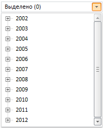 После изменения отметки в строке отображается диапазон и количество выделенных элементов, например: «2005...2010 (4)».