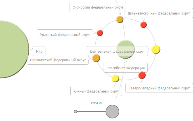 Пузырьковое дерево позволяет отобразить для иерархических данных наборы из двух значений: