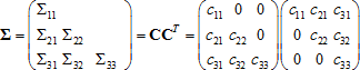 Выполнение разложения Холецкого матрицы Σ для нахождения такой матрицы C, которая удовлетворяет условию Σ = CCT, является нижней треугольной и содержит строго положительные элементы на диагонали: