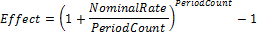 Effect(NominalRate: double; PeriodCount: integer): double;