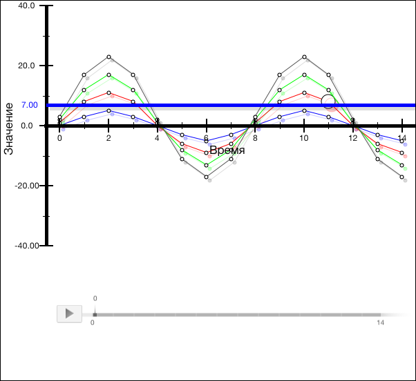 В данном примере реализовано добавление линии уровня на диаграмму. При изменении значения временной оси и нажатии на область диаграммы происходят следующие действия: