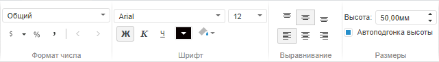 Для настройки внешнего вида заголовка используйте группы команд «Формат числа», «Шрифт», «Выравнивание», «Размеры», расположенные на вкладке «Заголовок» ленты инструментов: