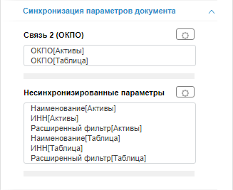 Для настройки синхронизации всех параметров, используемых в аналитической панели, используйте вкладку боковой панели «Синхронизация параметров документа».