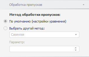 В таблице коэффициентов выделите фактор, для которого требуется настроить обработку пропусков.