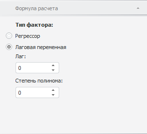Регрессор. Фактор будет использоваться в качестве независимой переменной. Для фактора данного типа доступно редактирование формулы;