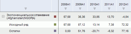 при выполнении метода из категории «Сглаживание» - «Экспоненциальное сглаживание(<Имя_Ряда>)». Например: