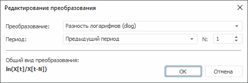 Разность логарифмов. Расчёт разности логарифмов соседних точек ряда за определенный период (ln(X[t]/X[t-N])):