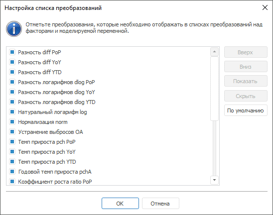 Преобразование значений ряда позволяет выполнять анализ «Что если» путём применения различных преобразований для значений ряда и сравнения полученных результатов.