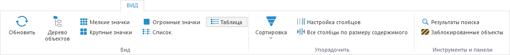 Для изменения отображения объектов в списке навигатора выберите вид: