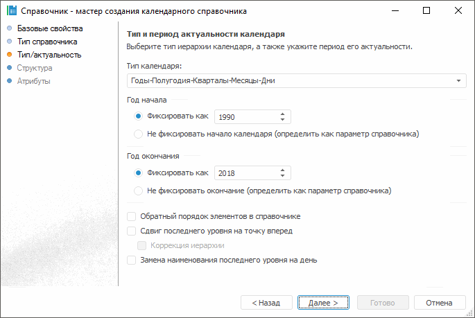 На странице «Тип справочника» установите переключатель напротив пункта «Календарный справочник».