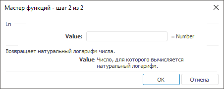 Value. Вещественное число больше нуля, для которого вычисляется натуральный логарифм.