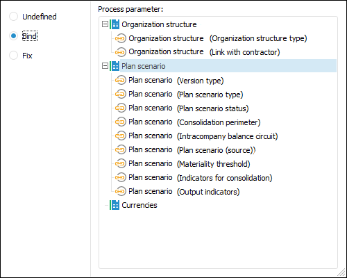 Bind. In this case the process parameter corresponding to data entry form parameter is selected:
