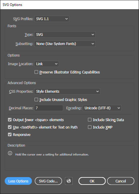1. Save the image in the SVG format with the quality value as 7 decimal places in SVG advanced options: