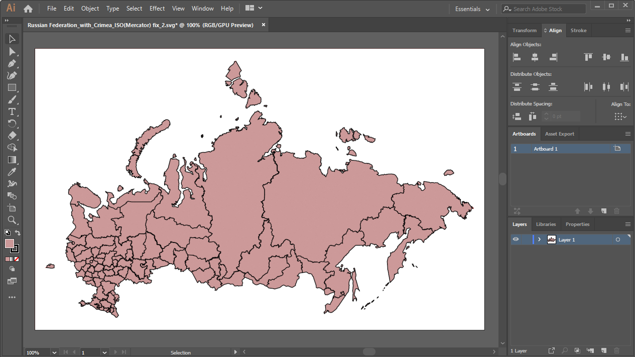 To determine exact coordinates of territory borders, prepare an SVG topobase in any vector graphics editor. Consider an example of preparing an SVG topobase in Adobe Illustrator: