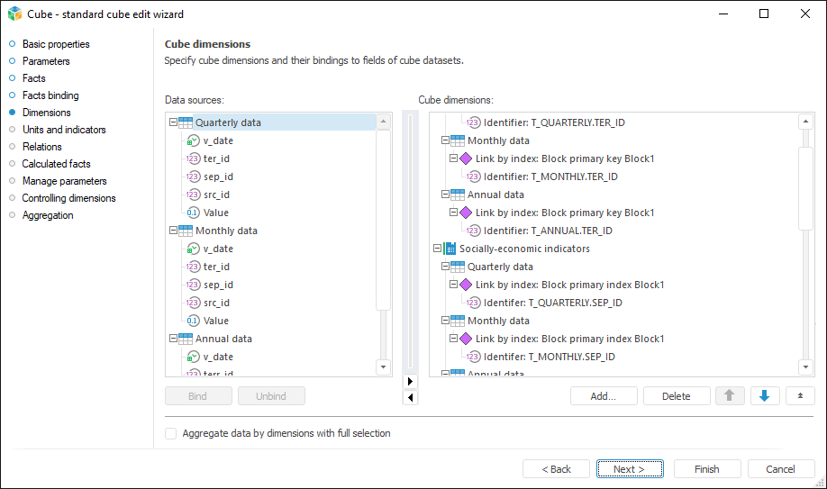 This page is used to bind data source fields with cube dimensions.
