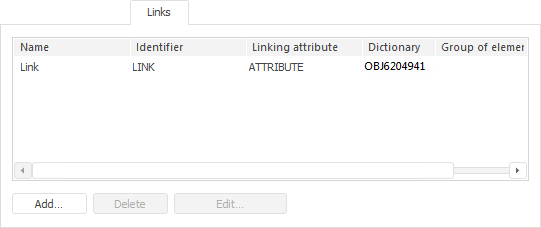 To create and set up links by attributes with other MDM dictionaries, use the Links tab.