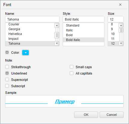 SampleTextString The SampleTextString property sets text of the string that is used for the font settings example.