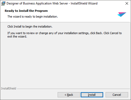 Installing designer of business applications back end is executed with one of the web servers: