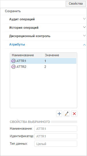 Примечание. При разделении ролей вкладка «Атрибуты» будет доступна только администратору информационной безопасности с привилегией «Изменение прав пользователей, раздача ролей, изменение политики», «Изменение метки безопасности и списка контроля доступа любого объекта».