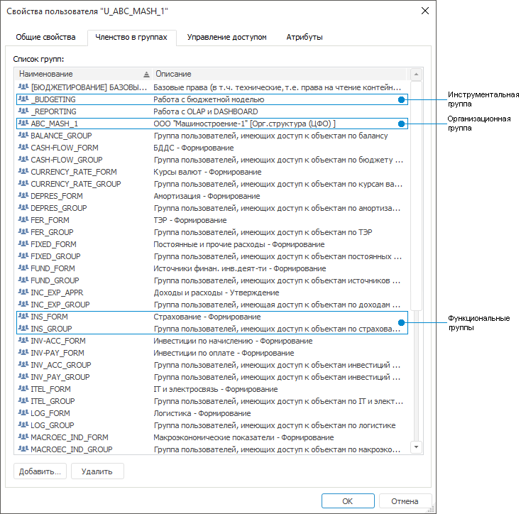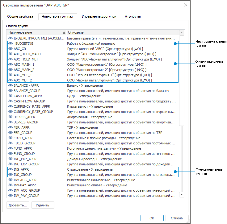 Состав групп, в которые включены пользователи, определяют инструментальные, функциональные и организационные права на объекты продукта.