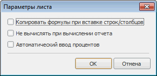 Не вычислять при вычислении отчета. При установленном флажке выбранный лист не будет вычисляться при вычислении отчета;