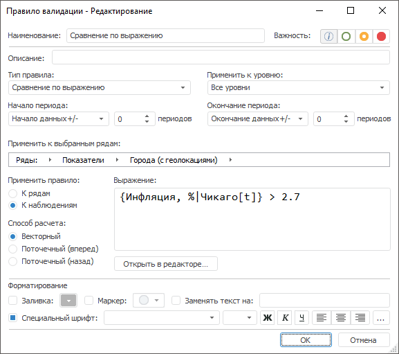 Примечание. Правило валидации доступно, если источником данных является база данных временных рядов или стандартный куб с календарным измерением.