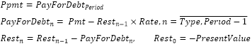 Метод Ppmt возвращает величину платежа в погашение основной суммы по инвестиции за данный период на основе постоянства периодических платежей и постоянства процентной ставки.