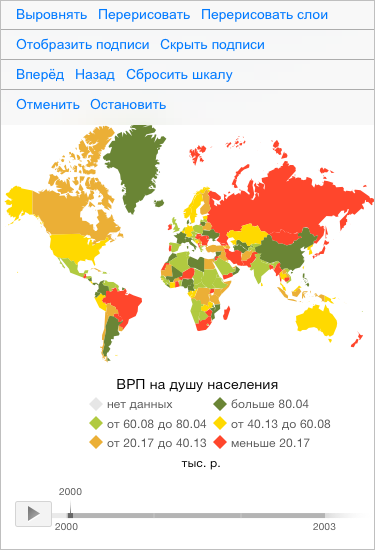 Внешний вид карты с легендой и дополнительными кнопками: