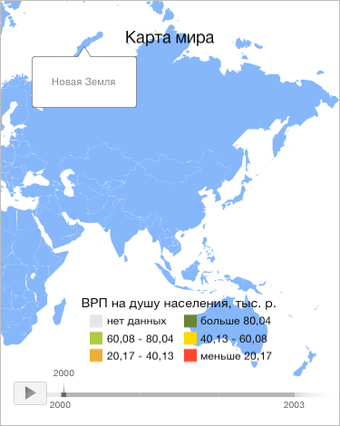 Затем вручную нажмём на область слоя карты с идентификатором «RU». В результате этого будет изменён масштаб и выполнена прокрутка к данной области. Цвет заливки всех областей будет изменен на голубой. Также в точке нового центра указанной области будет отображена всплывающая подсказка: