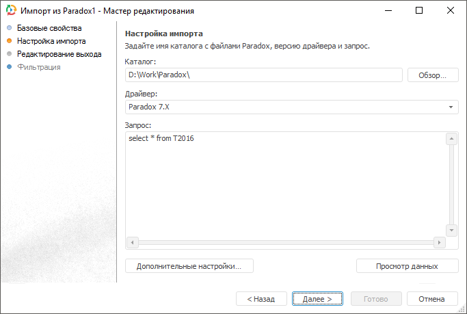 Укажите каталог с файлами Paradox и драйвер для соответствующей версии Paradox.