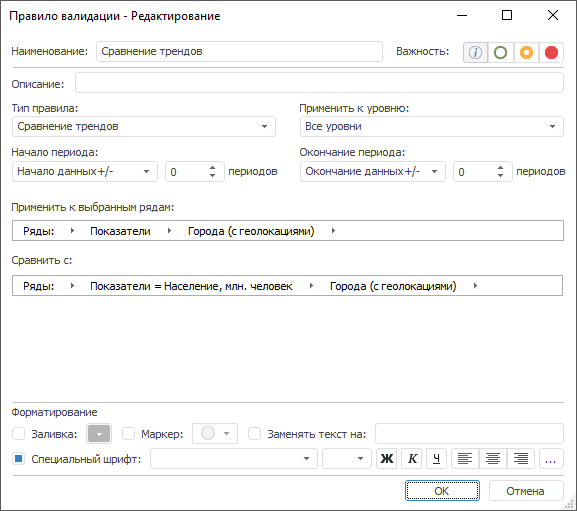 Примечание. Правило валидации доступно, если источником данных является база данных временных рядов или стандартный куб с календарным измерением.