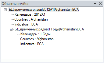 При добавлении в документ объектов отчёта работа с ними ведётся с помощью панели «Объекты отчёта»: