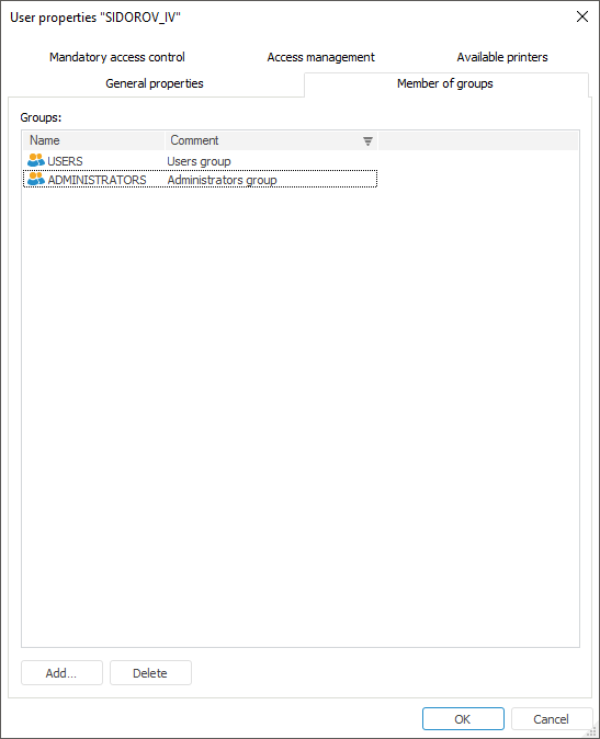 NOTE. One user may be a member of several groups. The permissions of such a user are a sum of permissions of all the groups of users he is a member of.