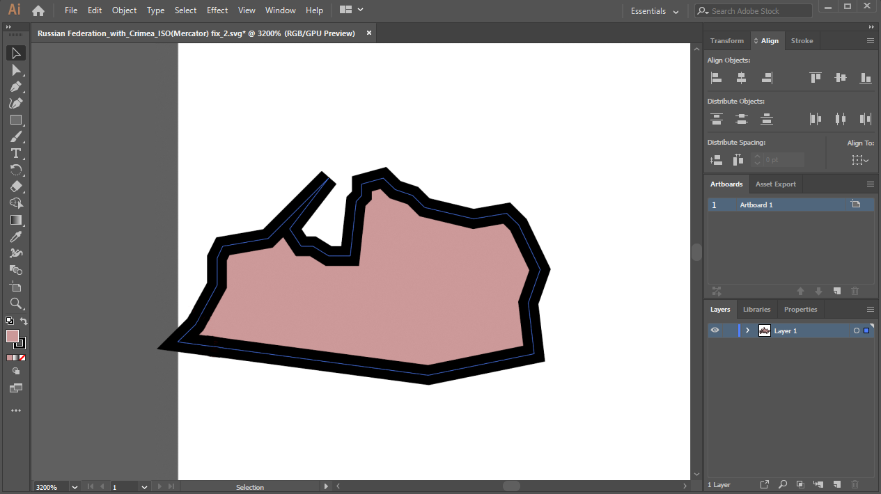 To determine exact coordinates of territory borders, prepare an SVG topobase in any vector graphics editor. Consider an example of preparing an SVG topobase in Adobe Illustrator: