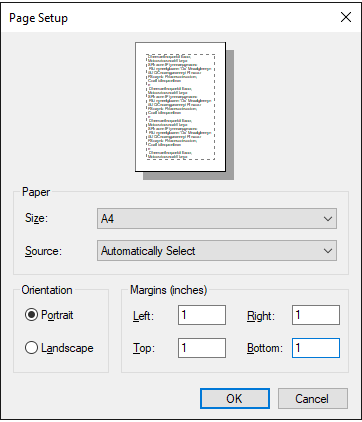 Executing one these operations opens the Page Settings dialog box. The dialog box look depends on the sheet type.
