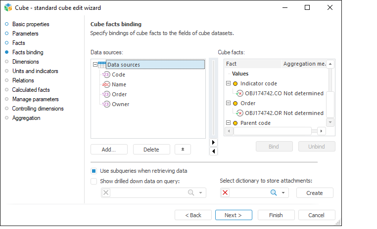 - Standard Cube. Structure of a cube is determined by the set of dictionaries and the combination of facts. Facts describe the data stored in dimensions that are determined by a set of cube dictionaries. In other words, dictionaries determine the coordinate axes of the cube, and facts determine various different in each point of the obtained coordinate system. Except for the facts that store data, calculated facts and relations can be created in a cube. Calculated fact values are determined by formula based on data of other facts or relations. Relations enable the user to get fact values by shifting towards the current calculation point. It enables the user, for example, to calculate difference between the current and any previous or next value. Various types of data aggregation can also be set up in cube.