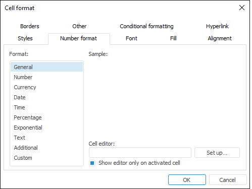 Executing one of these operations opens the Cell Format dialog box:
