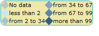The page below gives code of legend setup in the JSON format. The code must be stored in XML file that stores map settings within the MapChart root item. The dictionary must contain the following items: