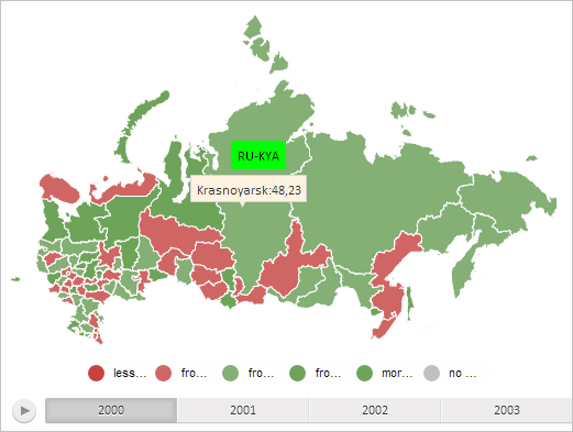 To execute the example the HTML page must contain the MapChart component named map (see Example of Creating the MapChart Component). Display data label and tooltip for map layer area with the RU-KYA identifier: