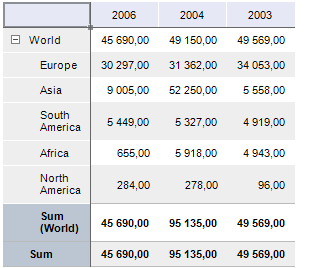 Displaying of totals can be set up for table rows and columns. For example, the sum of column values cab be displayed in columns.