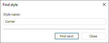 Clicking the Find Next button gets the found style focused. The search is case-insensitive and it is executed only inside styles table.