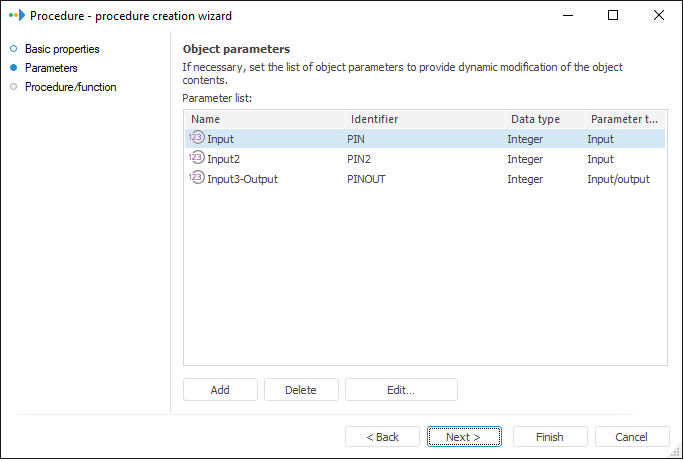 NOTE. Among function parameters should be only one parameter with the Function Result purpose.