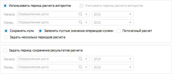 Примечание. Использование флажка доступно только при снятом флажке «Использовать период расчёта алгоритма».